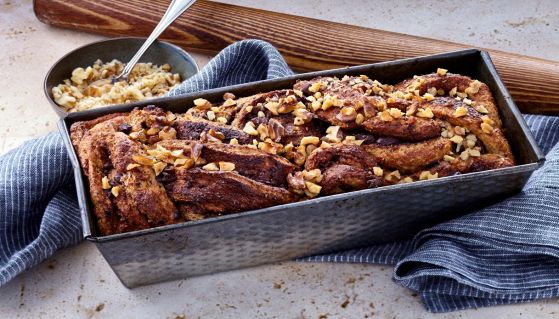 Dopo aver impastato, è necessaria una prima lievitazione di almeno due ore. Dopo di che, l’impasto va steso su una spianatoia e farcito con uno strato di crema. A questo punto bisogna arrotolarlo su se stesso fino a formare un cilindro che va tagliato a metà in lunghezza. Poi, si intrecciano le due parti, si mette il tutto in uno stampo da plum cake e si lascia lievitare ancora un paio d’ore. Infine, si inforna a 180° per circa 40 minuti.